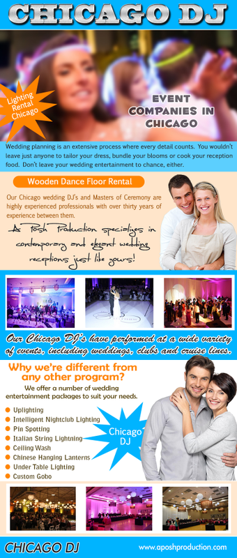 Experienced talent is not only what we strive for at A Posh Production. We take pride in our customer service, too! Our Wedding DJ Chicago will talk extensively with you about musical preferences and the timeline of events you want for your big day. Our seasoned professionals know every couple is different and will work to make your event lighting as unique as you. Click this site http://aposhproduction.com/chicago-wedding-dj/ for more information on Wedding DJ Chicago.